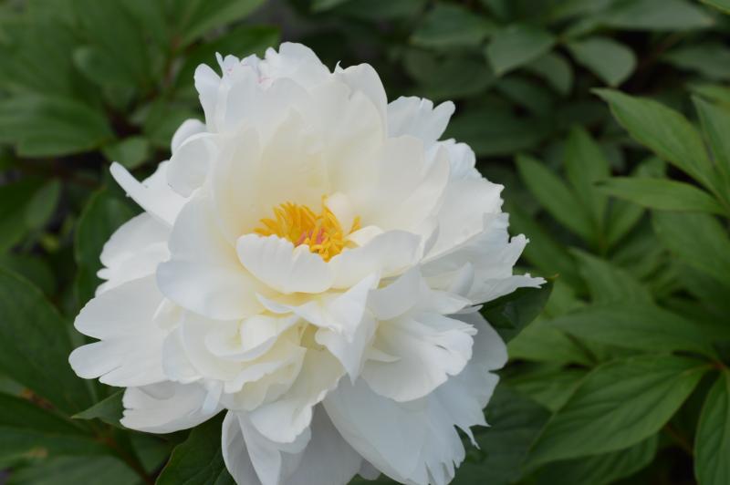 Long lived, hardy, herbaceous, bush like perennial with divided leaves that are maroon in spring and turn green. Plants bear huge, fragrant flowers that are a good summer cut flower. Not particular about soil. Grow in full sun or light shade for best flower production. Mulch to keep roots cool and moist. Do not over fertilize. Leaf spots can be a problem if plants have too much nitrogen. Plant peonies in a row for a hedge or plant in sunny border. Plant with spring bulbs and their expanding foliage will shroud declining bulb foliage. Plant with Siberian iris, foxgloves, poppies, salvia, dianthus, rudbeckia, and daisies.