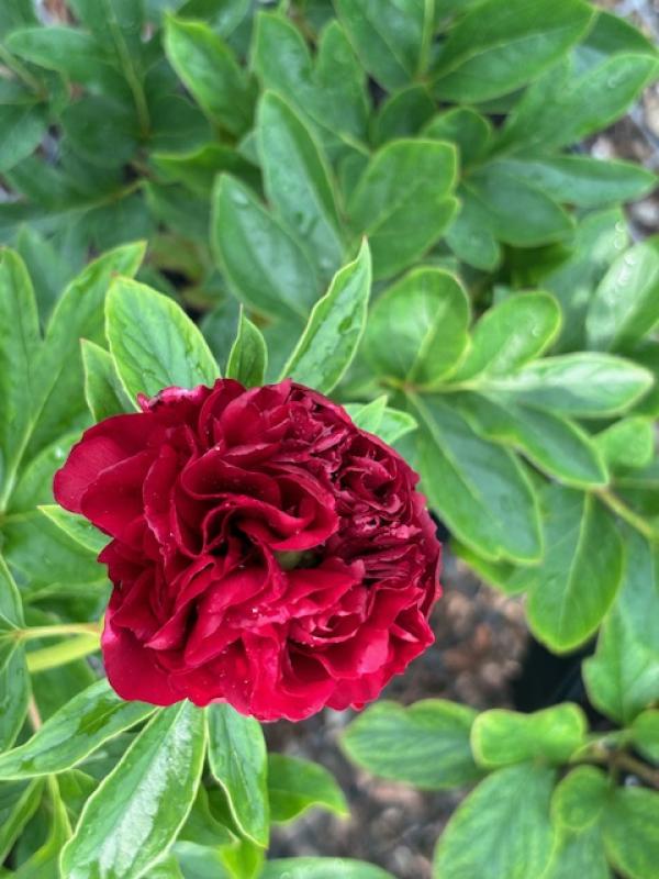 Long lived, hardy, herbaceous, bush like perennial with divided leaves that are maroon in spring and turn green. Plants bear huge, fragrant flowers that are a good summer cut flower. Not particular about soil.  Grow in full sun or light shade for best flower production. Mulch to keep roots cool and moist. Do not over fertilize.  Leaf spots can be a problem if plants have too much nitrogen. Plant peonies in a row for a hedge or plant in sunny border. Plant with spring bulbs and their expanding foliage will shroud declining bulb foliage. Plant with Siberian iris, foxgloves, poppies, salvia, dianthus, rudbeckia, and daisies.