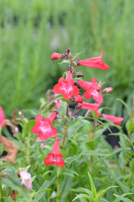 Basal tufts of glossy, narrow, green foliage sends up stiff stems with tubular red flowers. Similar to it’s showy, large annual cousins, but more reliably winter hardy. Does best when in full sun with well-drained soil. Great  plant for a hot dry area. Plant with artemisia, catananche, poppies, yucca, sedum, verbascum, butterfly weed, liatris, and yarrow.