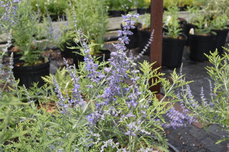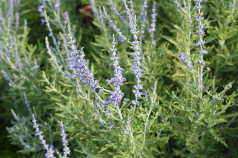 Denim and Lace has stronger stems and a more upright habit than most older varieties of Russian Sage. Plant in full sun in average to poor well drained, to even dry soil. Can be used as a herbaceous hedge, in the back of a mixed sunny border or in a cut flower garden. A great filler for the garden because its airy hazy look softens harsher colors. Plant in sun with daylilies, coreopsis, heliopsis, helenium, hibiscus, yarrow, salvia, boltonia, and rudbeckia.