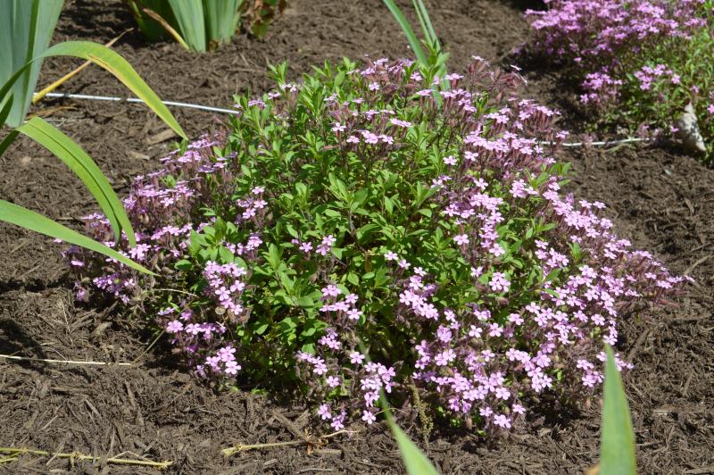 Prostrate stems with oval leaves. Plants form sprawling clumps and stems have a tendency to root where they fall. Plant in well drained, sandy or loamy soil in full sun or light shade. If you want the plant to stay compact grow in poor, rather than rich soil. Use in rock gardens, trailing over rocks, with artemesias, yarrows, daylilies, veronicas or sedums.