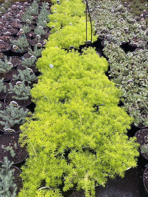 Soft, golden, rubbery, linear semi-evergreen foliage is great for creating fun color combinations. Fireworks-like heads of bright yellow flowers. In three years you can expect a 6â tall by 3â wide mound. Easy to grow in any type of well drained soil in full sun. Well suited for growing in tubs and alpine trough gardens if adequate drainage is provided. Zone 3-9.