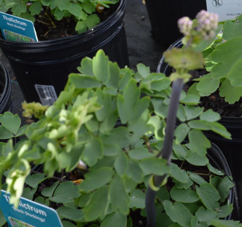 A tall plant with strong, nearly black stems and contrasting green lacy foliage that is divided into rounded leaflets. Tall stalks bear large, flat, fluffy lavender flower heads. Plant in rich, moist, but well drained soil in partial shade. Clumps may be divided every 3 to 4 years if desired. Cut back to the ground in late autumn. Great specimen plant in the landscape, both flowers and foliage are beautiful and bold. Excellent plant for back of border, ponds edge, or woods edge.