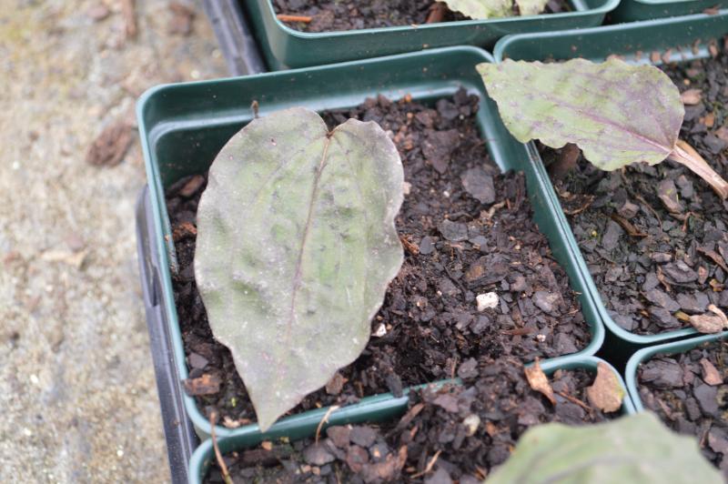 Woodland plant producing a single leaf during the fall which stays green throughout the winter with purple pigmentation on the underside.  Thrives in part shade to full shade; in moist humus enriched soil in a woodland/forest. Use to naturalize areas with spring woodland bulbs, bleeding hearts, actaea, epimedium, tiarella, columbine, and uvularia. Plant in shady borders or rock gardens.