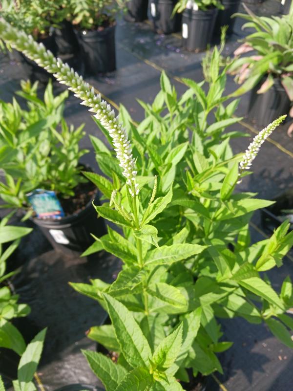 Blooms in late Summer with long spikes of white flowers and possibly tinged with pink.