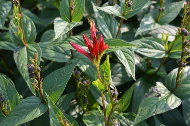 Very interesting native plant that thrives in moist shady locations.  Has green oval leaves with striking red flowers with a yellow star at the tip in June-July. Little Redhead' is a superior selection of the species. Does well in a moist woodland garden. Grow in part to full shade in humus-rich soil. Spigelia come up quite late in the spring, so mark the planting spot to avoid accidentally planting something over it.