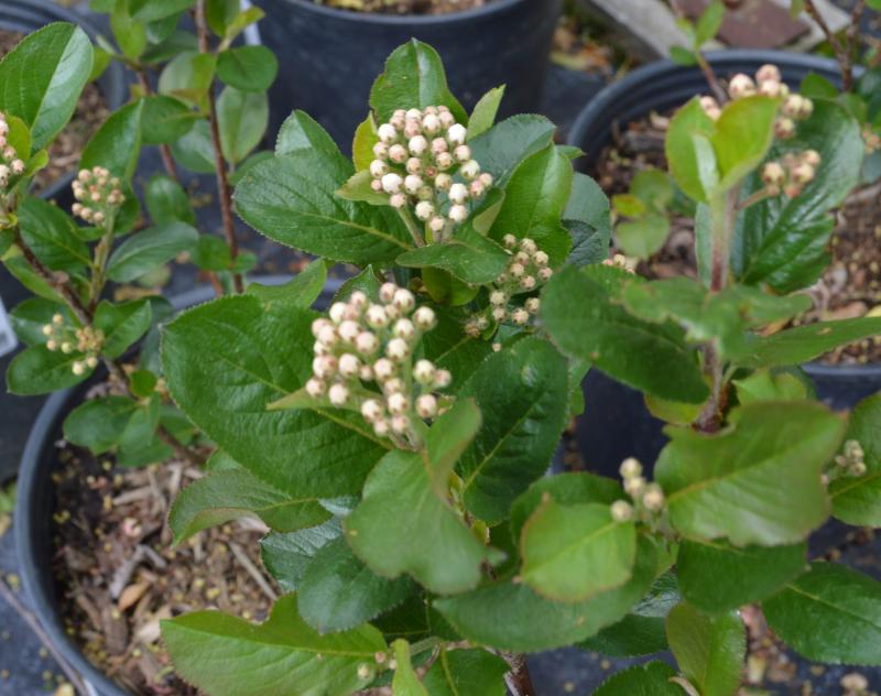 Open, upright, spreading, rounded deciduous shrub. Foliage has slight texture, and is a vibrant green from spring - summer, before turning bright shades of orange-red in fall. Blooms large clusters of white flowers with yellow/white centers in early spring, which will turn to black berries in fall. This Aronia works well in rain gardens, and along bodies of water such as ponds or streams. With its naturally colonial spreading habit, considered planting in areas where the shrub does not need to be restrained, such as along borders, or woodland edges.