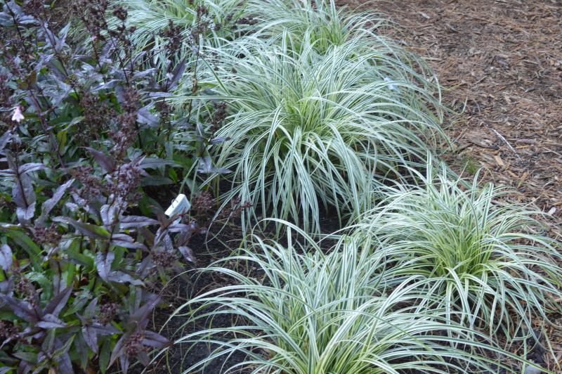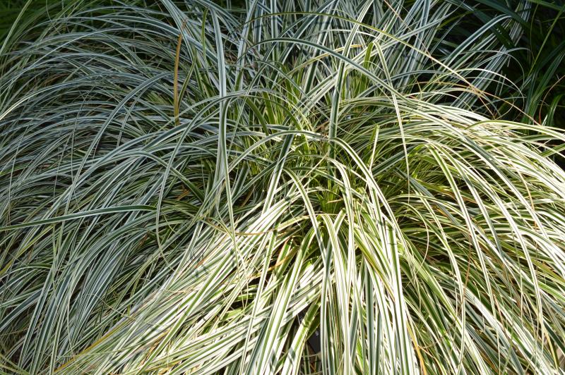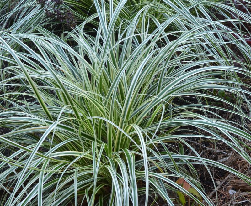 A variegated grass with creamy white edges and a dark streak down the center of the leaves. Sends up white blooms in late summer, but mostly grown for its foliar interest. Cascading form looks well in a container or to brighten and add interesting texture to a shady border. Plant in average soil in part shade. Zone 5-9.