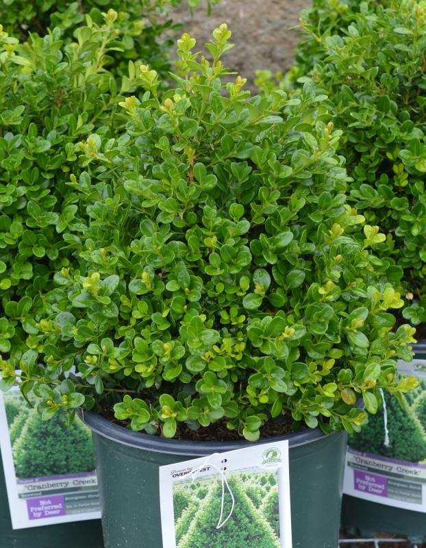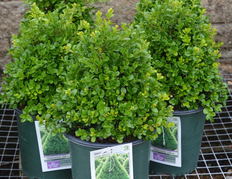 A boxwood hybrid with a natural pyramidal shape, without pruning. The emerald green foliage turns dark green in the fall. Best grown in moist soils, with protection from the winter winds. Zone 4b. Useful in hedges/screening, mass plantings, and even containers.