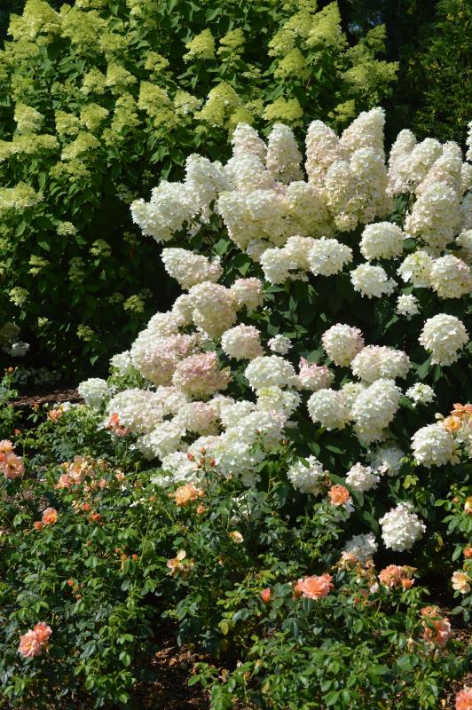 From summer to fall, the foliage of this dwarf shrub is drowned out by huge blooms that occur from top to bottom. White summer flowers turn pink in autumn. Soil pH does not affect this hydrangeas bloom color.
