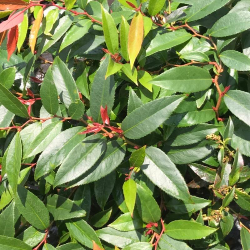A native shrub with arching evergreen canes covered with foliage that emerges red, turns dark green, and retires to deep purple or maroon through winter. 'ReJoyce' produces small white flowers clusters along canes in spring. Does well in containers, foundation plantings, or in naturalized woodland areas.