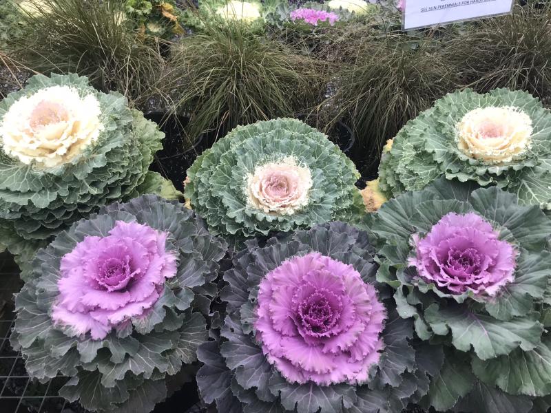 Ornamental cabbage and kales are great additions to fall containers and to freshen up flower beds after summer annuals are spent. These tough plants usually last well past Christmas providing color and interest over the winter. Be on the lookout for cabbage louper caterpillars, as this is a host plant.