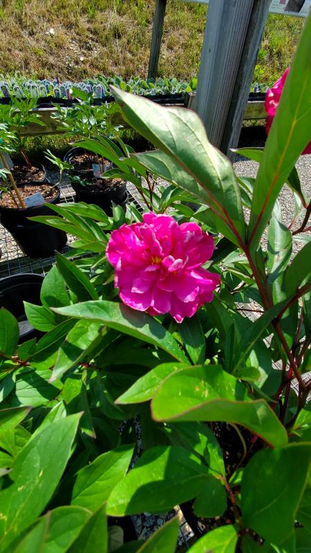 Long lived, hardy, herbaceous, bush like perennial with divided leaves that are maroon in spring and turn green. Plants bear high fragrant flowers that are a good summer cut flower. Large, bright red, double blooms sit atop erect stems above the foliage below. They give off a delightful fragrance. Not particular about soil. Grow in full sun or light shade for best flower production. Mulch to keep roots cool and moist. Do not over fertilize, leaf spots can be a problem if plants have too much nitrogen. Deer resistant.