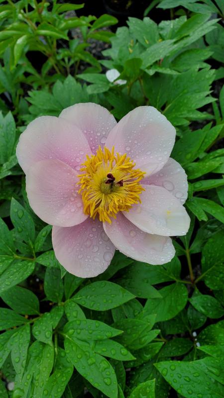 Long lived, hardy, herbaceous, bush like perennial with divided leaves that are maroon in spring and turn green. Plants bear high fragrant flowers that are a good summer cut flower. Deep red petals for a cup shape around a center illuminated by red staminodes edged in gold. The flowers give off a beautiful fragrance. Not particular about soil. Grow in full sun or light shade for best flower production. Mulch to keep roots cool and moist. Do not over fertilize, leaf spots can be a problem if plants have too much nitrogen. Deer resistant.