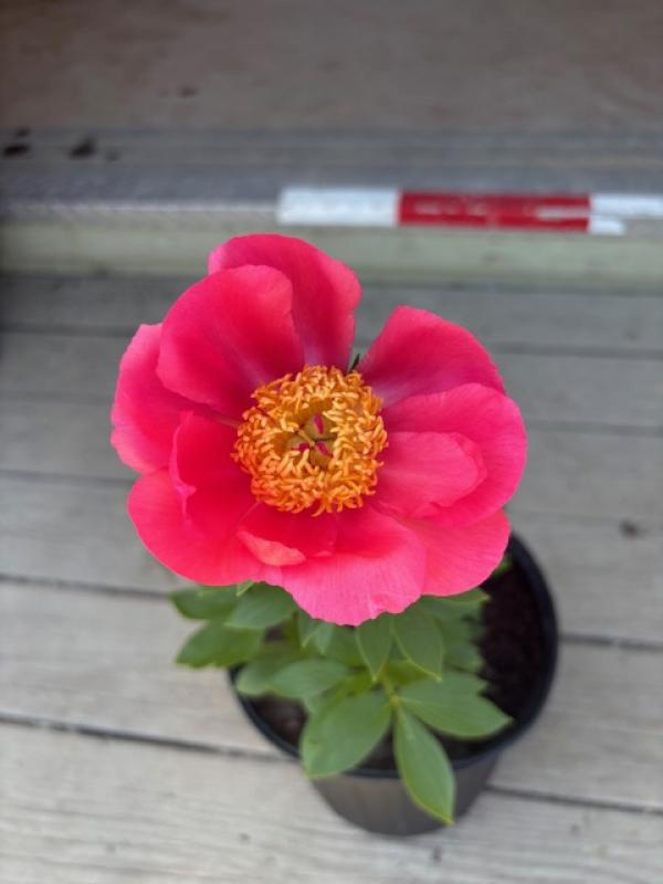 Long lived, hardy, herbaceous, bush like perennial with divided leaves that are maroon in spring and turn green. Plants bear high fragrant flowers that are a good summer cut flower. Bright pink petals open up to reveal golden stamens. They are also very fragrant. Not particular about soil. Grow in full sun or light shade for best flower production. Mulch to keep roots cool and moist. Do not over fertilize, leaf spots can be a problem if plants have too much nitrogen. Deer resistant.