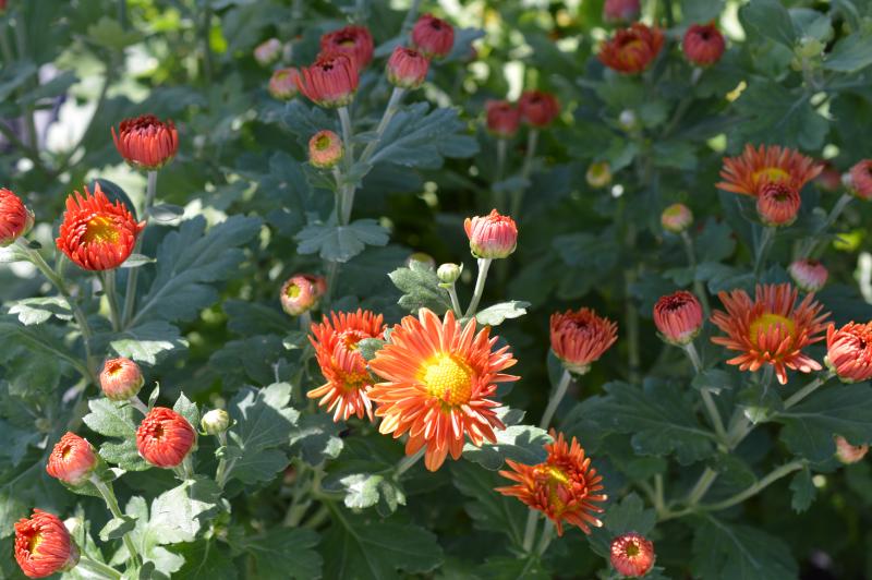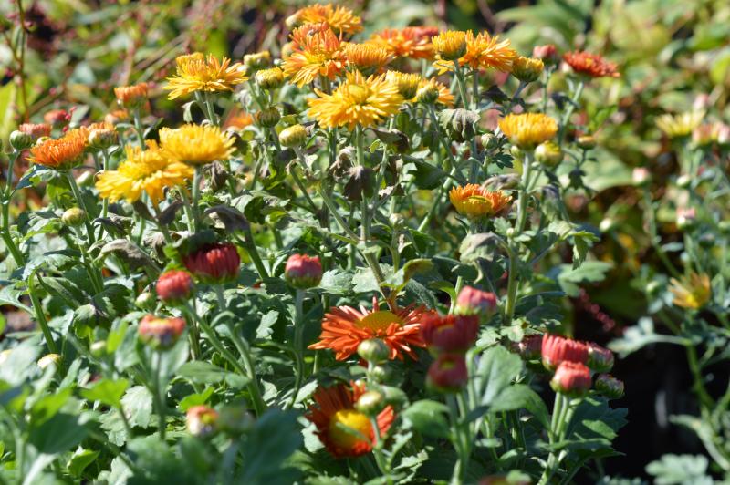 Excellent fall blooming plant with creeping mounds of green lobed leaves and free flowering single mum flowers. Hardier than cushion mums and wonβt need pinched back. Full sun in average well drained soil. Good fall container plant, fall blooming groundcover, or edging plant. Combine with fall blooming sedum, russian sage, ornamental grasses, and liatris microcephela or squarosa.