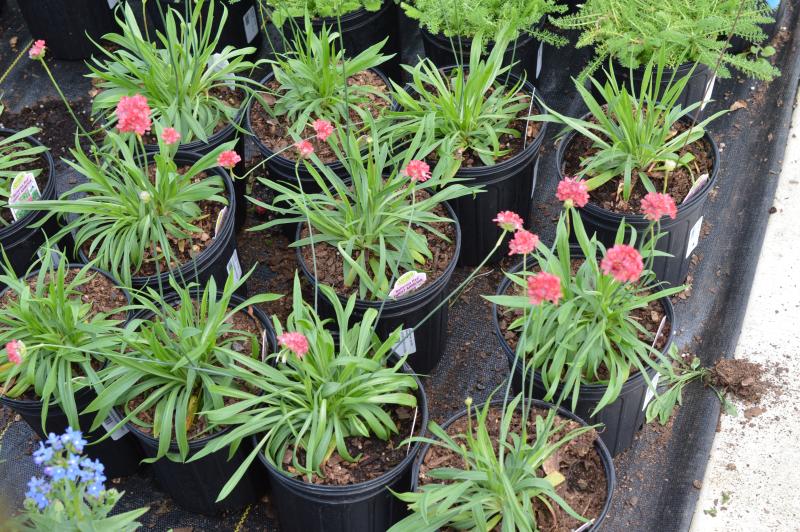 Plant forms a neat clump of dark green, glossy, grassy blades of leaves that shoot stiff, thick stems with round globular clusters of blooms. Blooms repeatedly if deadheaded. Tolerant of salt spray. Intense, rosy-red, lush, ball-shaped blooms. Well drained fertile to sandy soil in full sun. Zone 6-9. Evergreen and deer resistant.