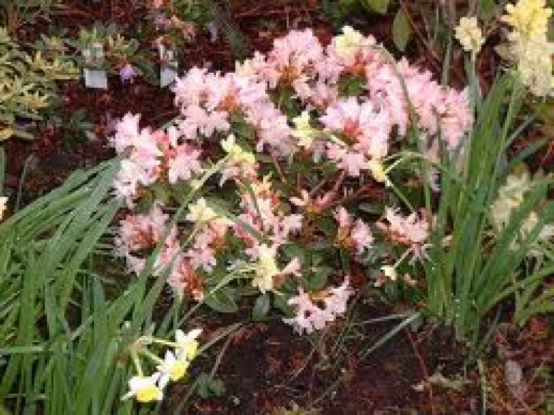 'Ginny Gee' a semi-dwarf rhododendron, has deep green evergreen foliage making it an attractive feature in your landscape year round. The swathes of large trusses bloom white and pink edged flowers, sometimes becoming more or less pigmented as they remain open from April to May. Great in beds, boarders, or containers.