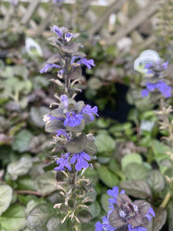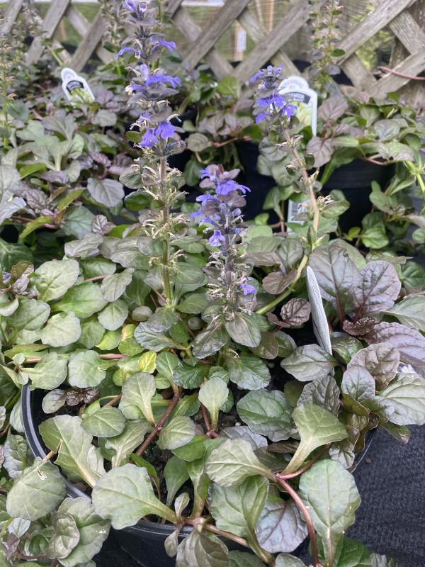 Bugleweed is an adaptable groundcover for sun to shade, though the foliage will be darker in higher light. Tolerates average to dry soil and heavy clay though not wet soil. Beautiful blue-purple flower spikes in spring. Semi evergreen foliage. Deer and rabbit resistant. Zone 6-9.
