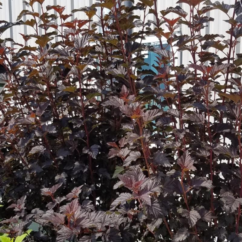 There are plenty of reasons of why your going to want to plant this Ninebark. Upright stems have a vase shape effect and gracefully support small ridged leaves, adding immense texture to your space. With the darkest, and most dramatic color yet, the foliage of 'Summer Wine Black' is an almost black burgundy that contrasts oh so elegantly against the clusters of white flowers that bloom along the stems in spring.