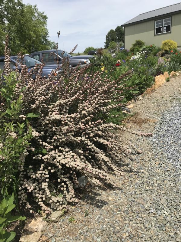 'Tiny Wine' is an excellent way to get those Ninebark characteristics without taking up too much room. This dwarf, upright spreading shrub produces deep maroon foliage that contrasts the clusters of small white to pink flowers that bloom in spring and early summer along slightly arching stems. Good way to add structure and color to the perennial border, foundation plantings or shrub border.