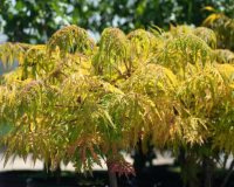 One of the most eye catching dwarf sumacs. Attractive cut-leaf foliage is a brilliant chartreuse yellow. In the fall it is a flaming orange-yellow. Will slowly spread by suckering. Easy in light shade to full sun in poor to average soil. Ph adaptable. One of the best to tolerate heat and drought. Will not tolerate wet feet. Wonderful as a specimen or in a container. Very eye-catching mixed with green foliage shrubs in the border. I love this plant!