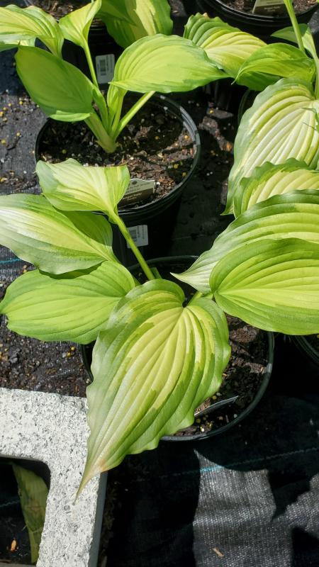 This large hosta cultivar provides creamy white leaves surrounded by a dark green, rippled margin. This leaf center emerges a creamy yelolow and matures to creamy white. The coloration intesifies as the seaon progresses. Blooma in midsummer. Light lavender flowers held above the foliage. Easily grown and long lived plants. Plant in light to full shade in average soil. Likes a moist location but will tolerate dry shade once established. Zone 3-9.