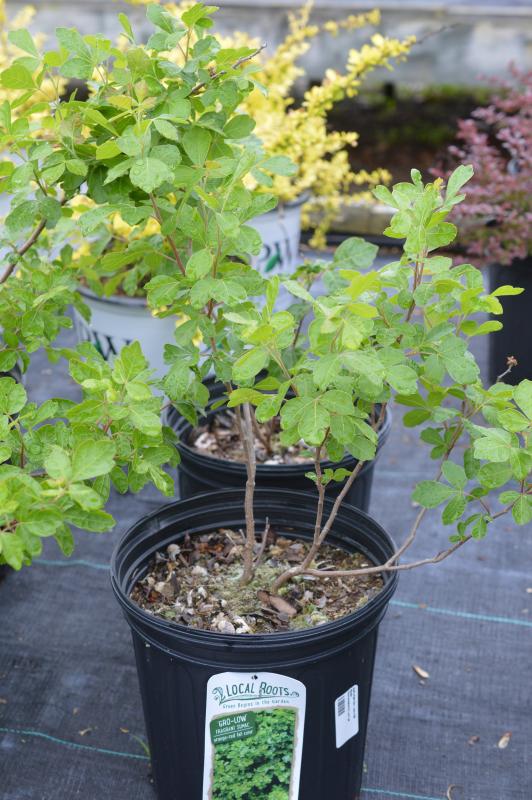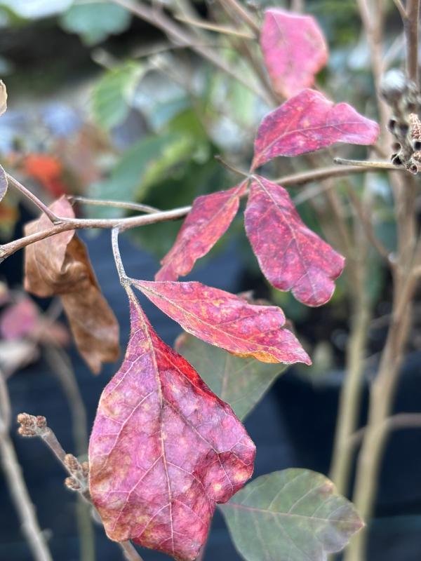 'Gro-Low' produces small yellowish flowers from mid-late spring that give way to hairy red berries that persist to winter. The common name, Fragrant Sumac, comes from the intensely fragrant stems and leaves that produce a lovely earthy-lemony scent. Those leaves by the way turns some of the most vivid autumnal colors in fall, filling your space in with golds, reds, and oranges. As a wide and low growing shrub it's an excellent way to fill in space without adding too much height. We recommend planting this shrub near foot traffic or somewhere the lovely scent can be appreciated.