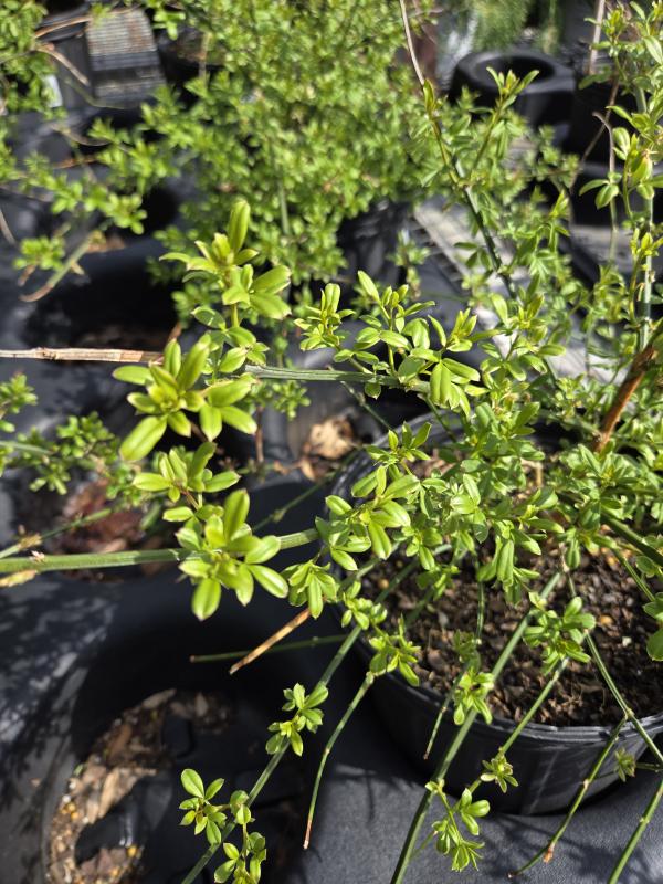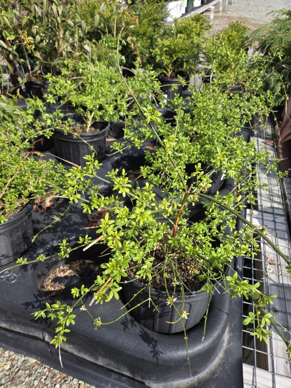 A versatile plant, ‘Winter Jasmine’ can grow into a 4’ tall mound, or if treated as a vine, can climb, sprawl, or hang to 15'. Yellow, non-fragrant flowers dot the arching stems that remain green year-round. Ideal slope or bank cover due to it ability to root down along the stems as well as for its ability to accentuate a cascading feature such as retaining walls. Also works well on arbors, trellises, fences, etc..