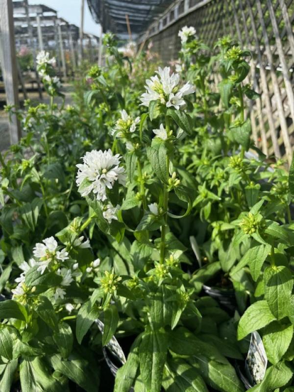 Angel Bells are white bell shaped flowers that grow over deep green mounds of foliage. Blooming in late spring to early summer, they add a beautiful white bloom to your flower beds. Hardy in Zones 3-8, they are deer resistant and attract bees and hummingbirds.