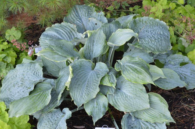 This blue Hosta has attractive, heart-shaped, thick, and corrugated leaves with wavy margins.  The leaves can get up to 9 inches wide by 11 inches long.  Long lived, easy to grow plants in filtered sunlight to full shade. Grows best in rich, moist soil but tolerant of dry shade. Smaller hostas can be grown in containers and shady rock gardens.  Zone 3-8.