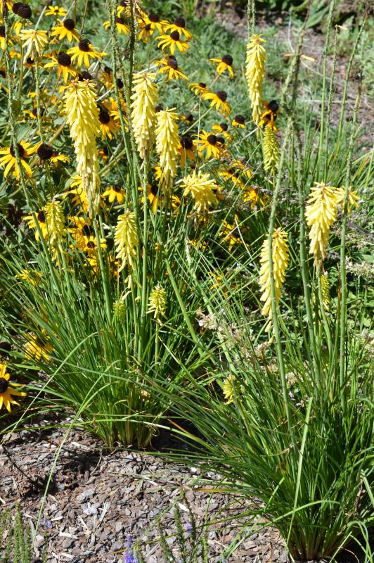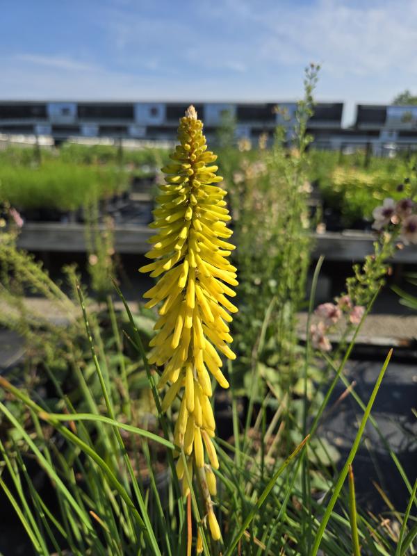 Red hot poker are a sun lovers perennial that form into a large clump of grass-like foilage.glow sticks provide long blooming yellow spikey flowers.Plant with baptisia,silene,echinacea,helenium,aster.