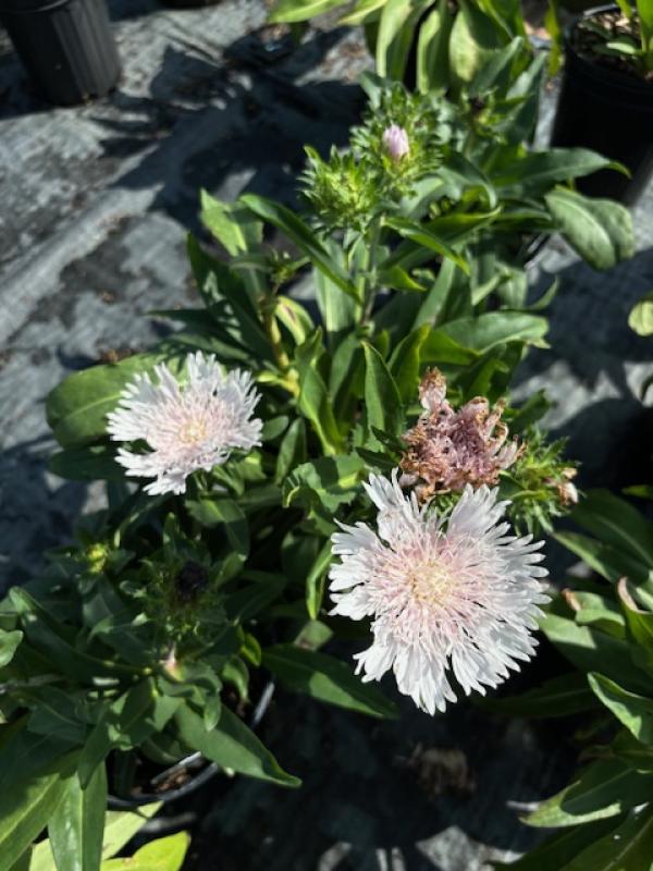 Divinity has beautiful white aster-like flowers that open to soft yellow centers that mature to pure white.This plant is long blooming if deadheaded.Plant with sedum,daylilies.