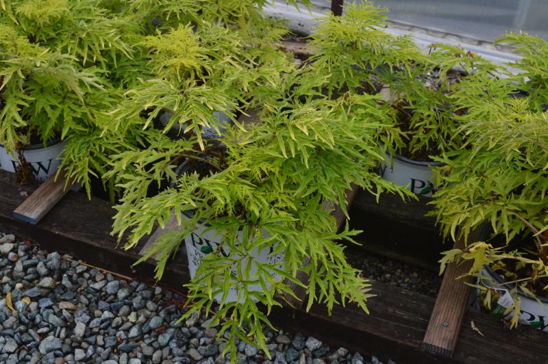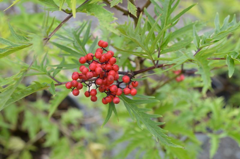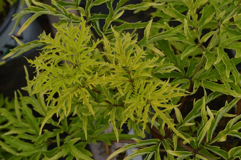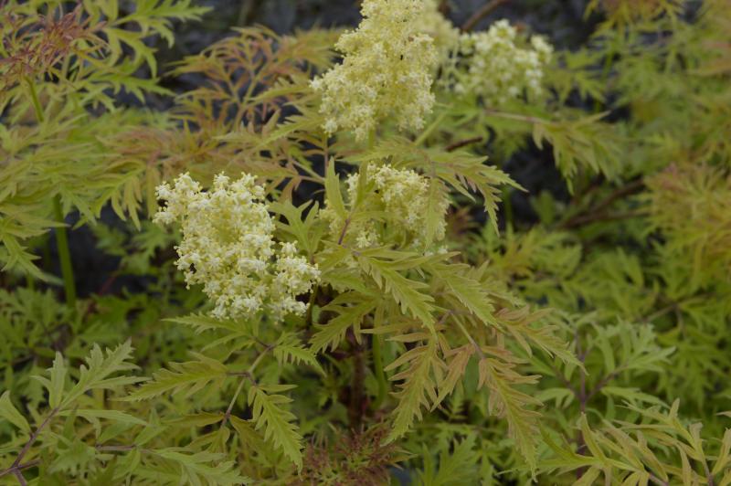 'Lemony Lace produces golden-green foliage in an irregular mounding habit. Late spring/early summer panicles of white bloom and give way to tasty red berries in fall. Looks stunning when planted in naturalized areas where suckering can be appreciated. Also makes a great specimen, boarder, screen, and looks especially well place when planted near bodies of water or low lying areas.
