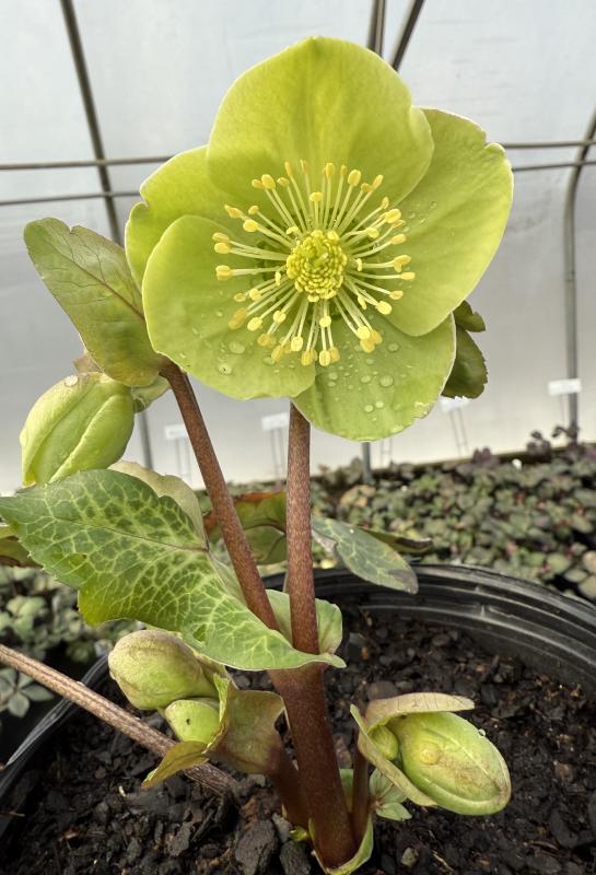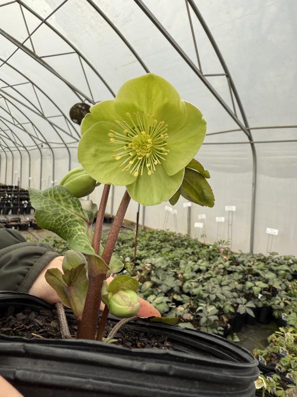 This evergreen, tough, and reliable perennial is adaptable and long blooming. The bright, yellow/green, nodding flowers are held atop the foliage and bloom from winter to early spring. Grows best when planted in evenly moist, humus rich soil, in light to full shade. Harmful if eaten and a skin irritant. Zone 5-9.