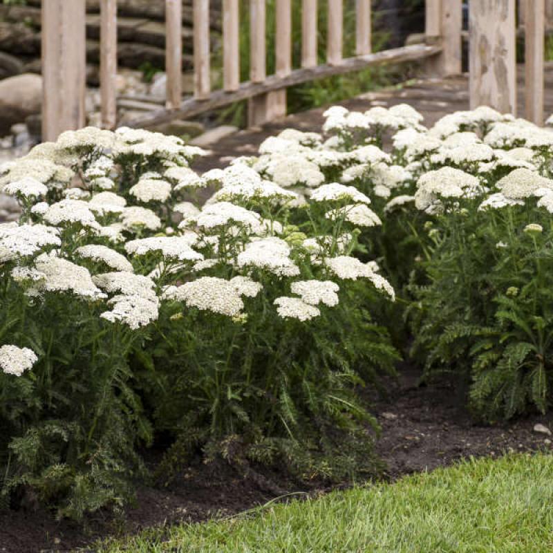 This is a striking yarrow with dark green stems that make the ivory white of the blooms pop. The upright habit makes it great for flower beds and cut flowers. Low maintenance plant that thrives with little care. Does best in a sunny well drained site in average to poor soil. Tolerant of hot summers and drought. At home in formal and informal gardens. Plant with daylilies, ornamental grass, veronica, liatris, balloon flowers, Mexican hat, coneflower, salvia, boltonia, autumn joy sedum, Russian sage, and blanket flower. Genus is native to the Northern Hemisphere. ZONE 3-9.