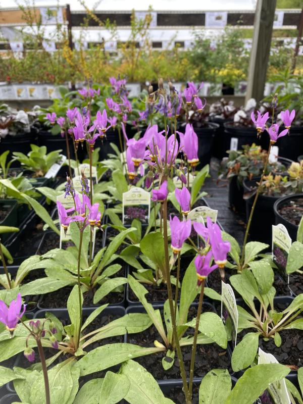Ephemeral plants with clump forming rosettes of long, oval, pale green leaves with toothed margins that shoot tall, stiff, sticky stems bearing loose umbels of large cyclamen blooms. Moist woodland soil in partial shade. Plant in front of moist border or in woodland with iris tectorum, hosta, pinellia, brunnera, bergenia, corydalis, aruncus aethusifolius, and carex.