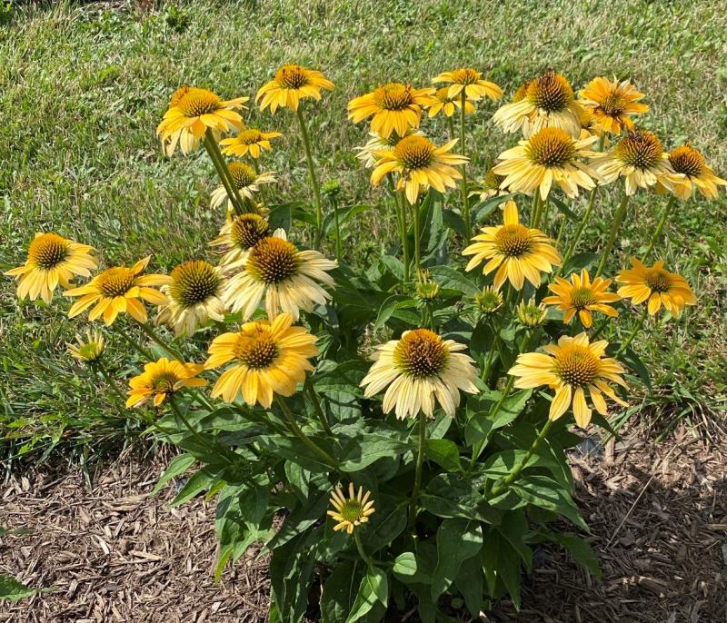 Another long blooming Echinacea, blooms last from early summer into fall. Bloom colors can range from a creamy white to a pale yellow. Plant in a sunny site in well drained fertile soil. Goes well with long flowering plants for the sunny border or wildflower meadow. Plant with heliopsis, yarrow, coreopsis, daylilies, liatris, helianthus, rudbeckia, and ornamental grass.