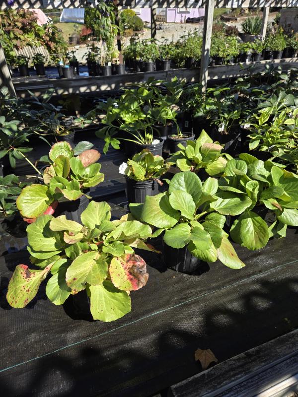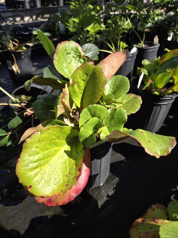 The large, glossy, leathery, leaves, are evergreen turning a rich maroon/purple in winter. Flowers in spring before new leaves appear. Trouble free, hardy ground cover. Deep, purple-red flowers are held above the foliage on sturdy red stems. Bergenia’s can grow in a wide range of soils, although they tend to thrive in moist soil. Keep in shade to part sun.