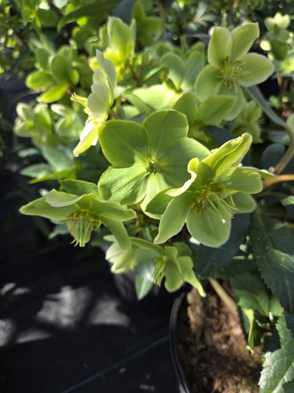 A interesting hybrid from Honeyhill Farms. Plants form a low evergreen clump of shiny blue-tinged leaves. A hybrid of H. niger and H. argutifolius.