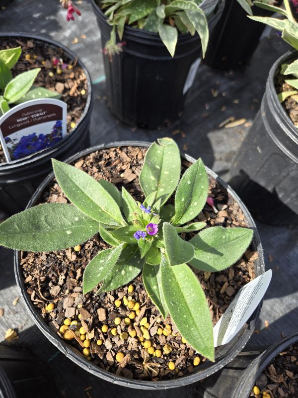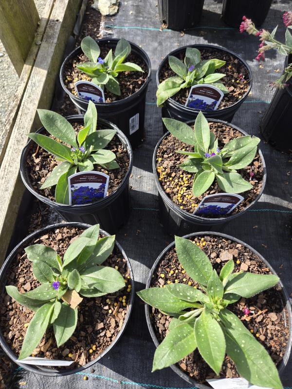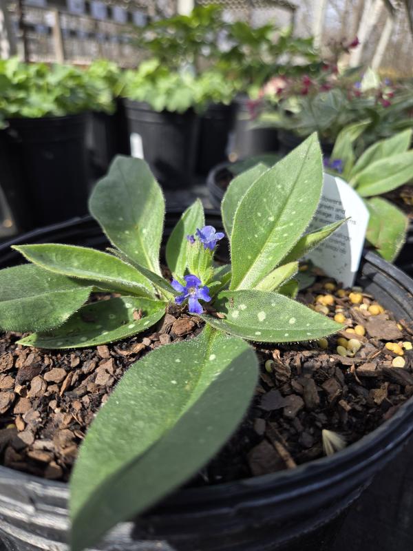 Pulmonaria are of importance in the garden due to their attractive foliage. White speckling dusts the dark green foliage, which can be enjoyed when the flowers are finished. Blooms from spring to early summer. Vivid, bold blue flowers cover the foliage. Easy to grow in evenly moist humus rich soil in partial to full shade. Plants are moderately drought tolerant once established. May go dormant early if it gets too dry.