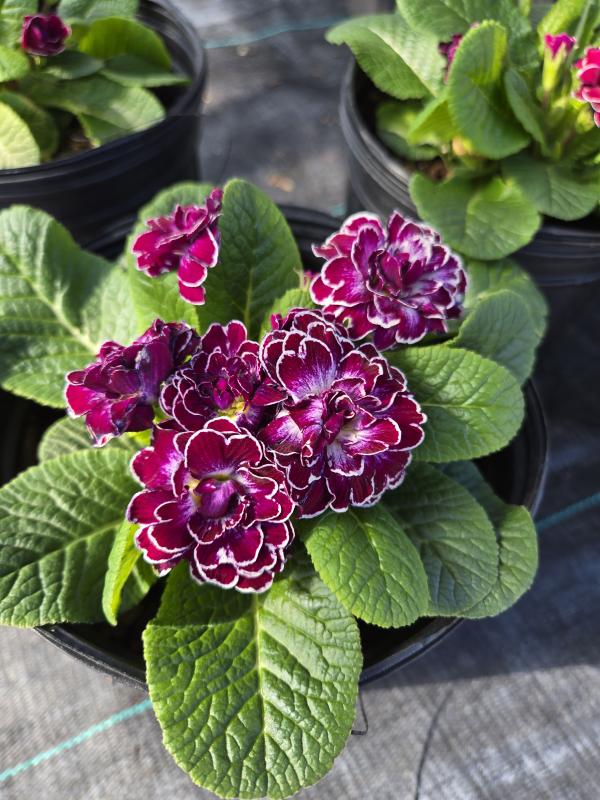 Green leaves form a basal rosette in the spring. Large double flowers are born above the foliage in early spring. Fragrant, double purple flowers with white accents around each petal. Prolific bloomer. Part to full shade in well-drained soil kept evenly moist. Mulch in the winter.