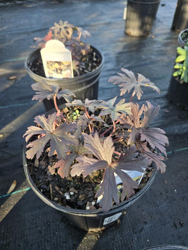 Vigorous, clump forming, herbaceous perennial with deeply lobed, purple to bronze flushed dark green foliage and upright stems bearing flowers. The dark foliage and light flowers make an attractive contrast. Blooms from late spring into the summer. Delicate white to pale lavender veined flowers are held atop the foliage. Prefers to be planted in average, moist, yet well draining soil in full shade to part sun.