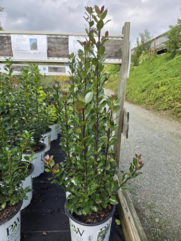 Castle Rouge is an amazing 4 season option. New growth emerges glossy red-burgundy and then in winter turns a deep, dark burgundy. This male variety will serve to pollinate the rest of the Castle series as well as other blue holly shrubs.