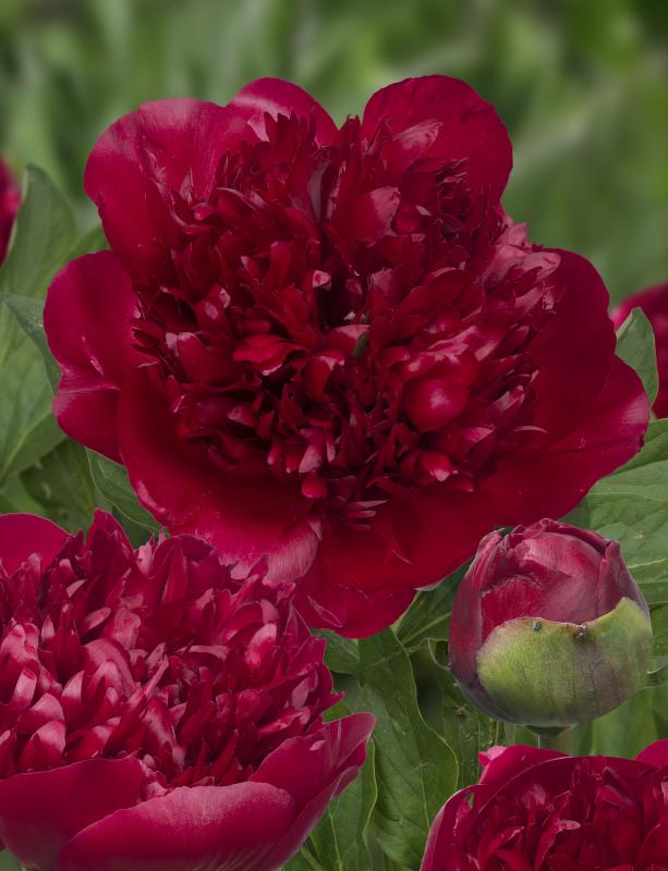 Christmas Velvet is a stunning red, double blossom Peony. The red stands out among the beautiful green foliage.