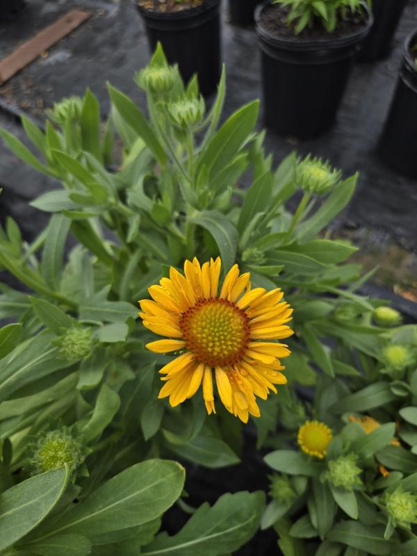 Another great member in Arizona series with a compact, branching habit with fuzzy green leaves and peach flowers. Attracts butterflies. Deer resistant. Very large, 4-5 inch flowers, yellow flowers with orange eye. Average well drained soil in full sun. Great for seaside gardens because they are salt and drought tolerant. Zone 3-10.