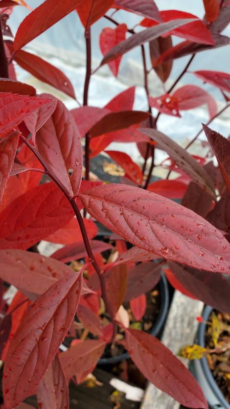 Native flower power! From May to June, long cylindrical drooping clusters of tiny white flowers cascade down 'Henry's Garnet' arching branches. Its not long till fall brings vivid autumnal reds, oranges, and golds to the foliage of this upright, rounded, board-spreading shrub. This shrub is very tolerant of heavy clay soil and soils that hold several inches of water both during and immediately after a rain event, making it a good idea for zone 2 of rain gardens. A great choice for erosion control such as on stream banks or slopes.
