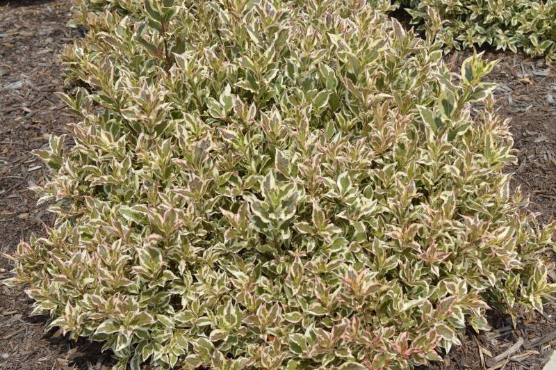 'My Monet Purple Effect' is a compact dwarf Weigela with variegated green and white foliage that has some pink/purple tones. Very floriferous, this Weigela produces purple tubular flowers in spring, that can rebloom sporadically throughout summer. This Weigela is a great way to spruce up edges, containers, and boarders. It can also be used in the landscape and mass plantings.