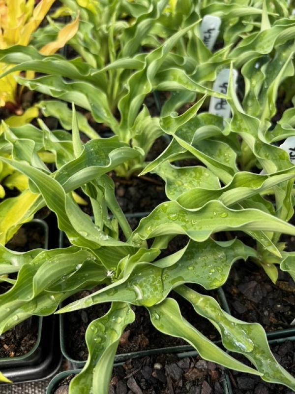 This prickly looking hosta emerges with blue in the spring fading to a blue green in the summer. The pointed leaves are folded with heavily rippled margins. Forms a symmetrical mound of intensely ruffled leaves.