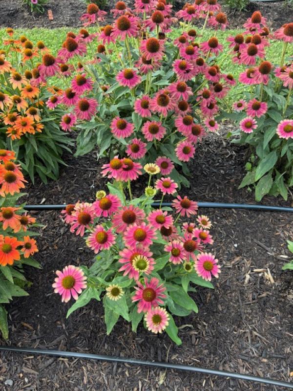 Remarkable!   Long flowering, large flowers, upright compact habit.  Flowers last for weeks, an all around great coneflower. Large, bright, long lasting deep pink with lemonade colored tips. Full sun to Part sun in well drained fertile soil.   Dry soil.     Zone:  4-9.